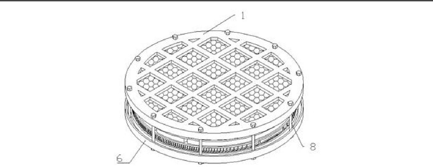 天然氣中水分的存在往往會(huì)造成嚴(yán)重的后果:含有CO2和H2S的天然氣在有水存在的情況下形成酸而腐蝕管路和設(shè)備;在一定條件下形成天然氣水合物而堵塞閥門(mén)、管道和設(shè)備;降低管道輸送能力,造成不必要的動(dòng)力消耗。水分在天然氣的存在是非常不利的事,因此,需要脫水的要求更為嚴(yán)格。在分離塔和吸收塔內(nèi)頂部安裝的除沫器種類繁多,而塔的體積較大,在除沫器安裝時(shí)需將除沫器分塊組裝成圓盤(pán)狀進(jìn)行安裝,而除沫器拼接塊的接縫會(huì)影響除水效果,普通的除沫器結(jié)構(gòu)和效果單一,不能近一步對(duì)水滴凝聚產(chǎn)生更好的過(guò)濾效果,因此需要一種全面的脫水除沫器。