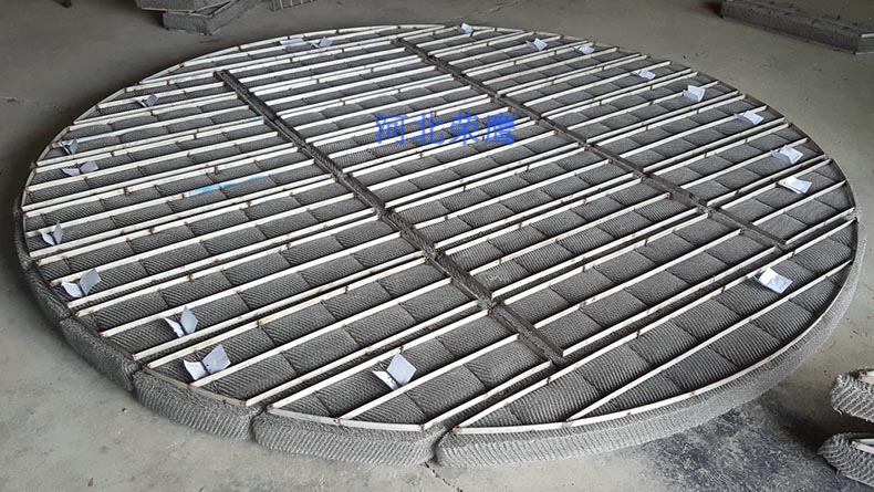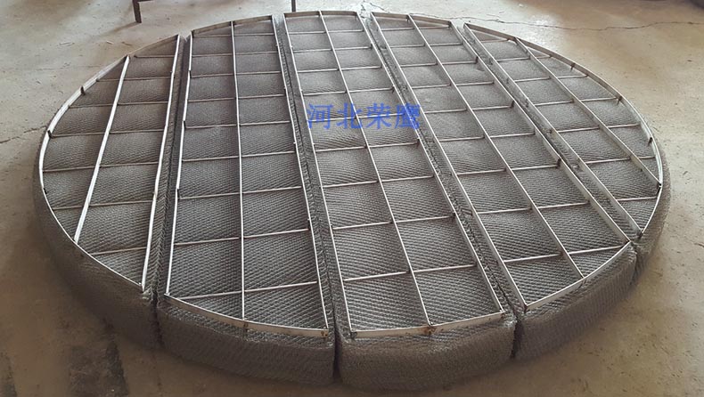 榮鷹公司生產(chǎn)的不銹鋼絲網(wǎng)除霧器網(wǎng)墊有卷盤型和條塊型兩種,卷盤型網(wǎng)墊通常適用于Dg300~600。條塊型網(wǎng)墊是由氣液過濾網(wǎng)一層層平鋪至客戶要求的厚度,再用格柵、定距桿和鉤子組成。條塊型網(wǎng)墊的形狀和尺寸,隨器體形狀或直徑和分塊數(shù)量而變化。格柵的通道面積不得小于網(wǎng)墊使用面積的80~90%。